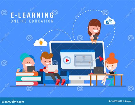 E-learning Online Education Concept Illustration. Kids Studying at Home