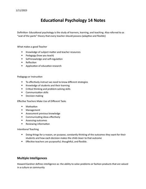 Notes Educational Psychology.